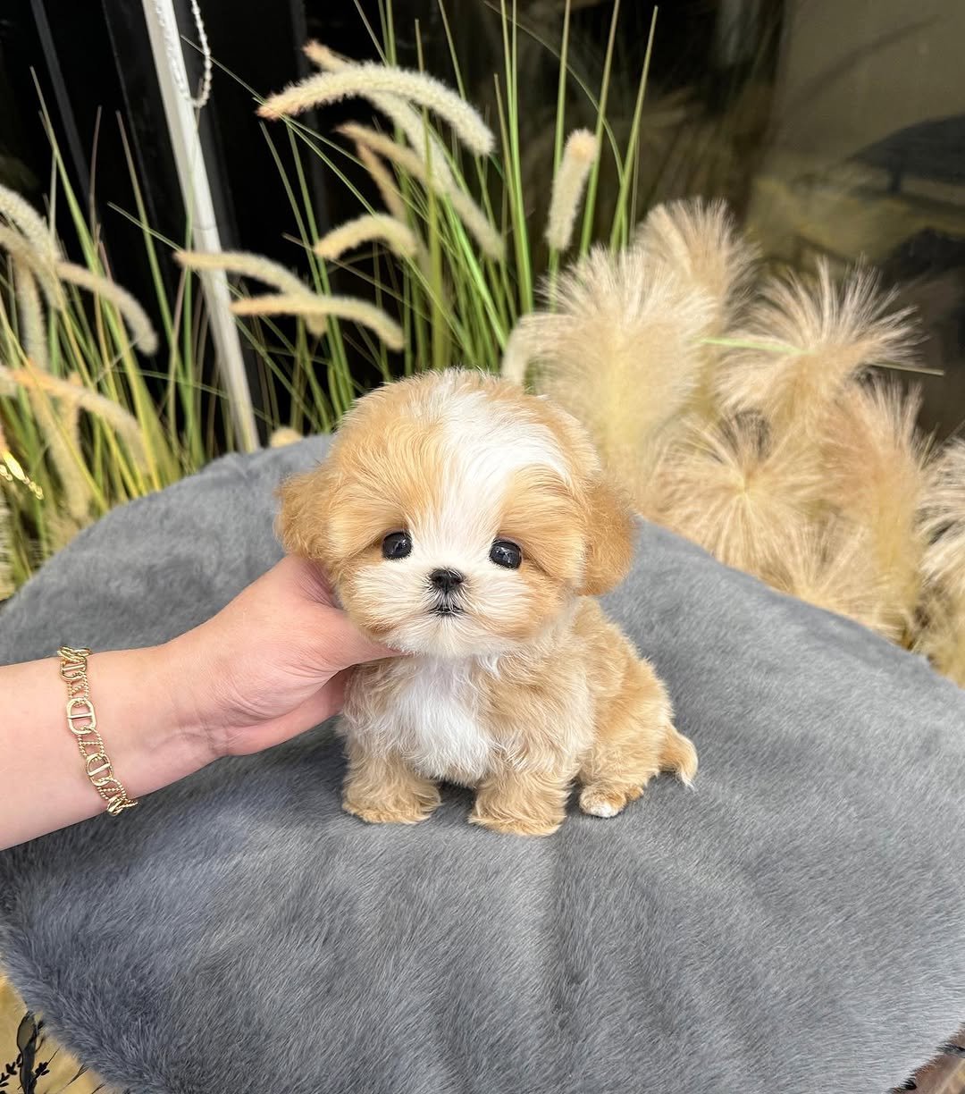What color coats do Teacup Maltipoos have? Their coats can be white, cream, apricot, or a mix, often curly or wavy in texture.