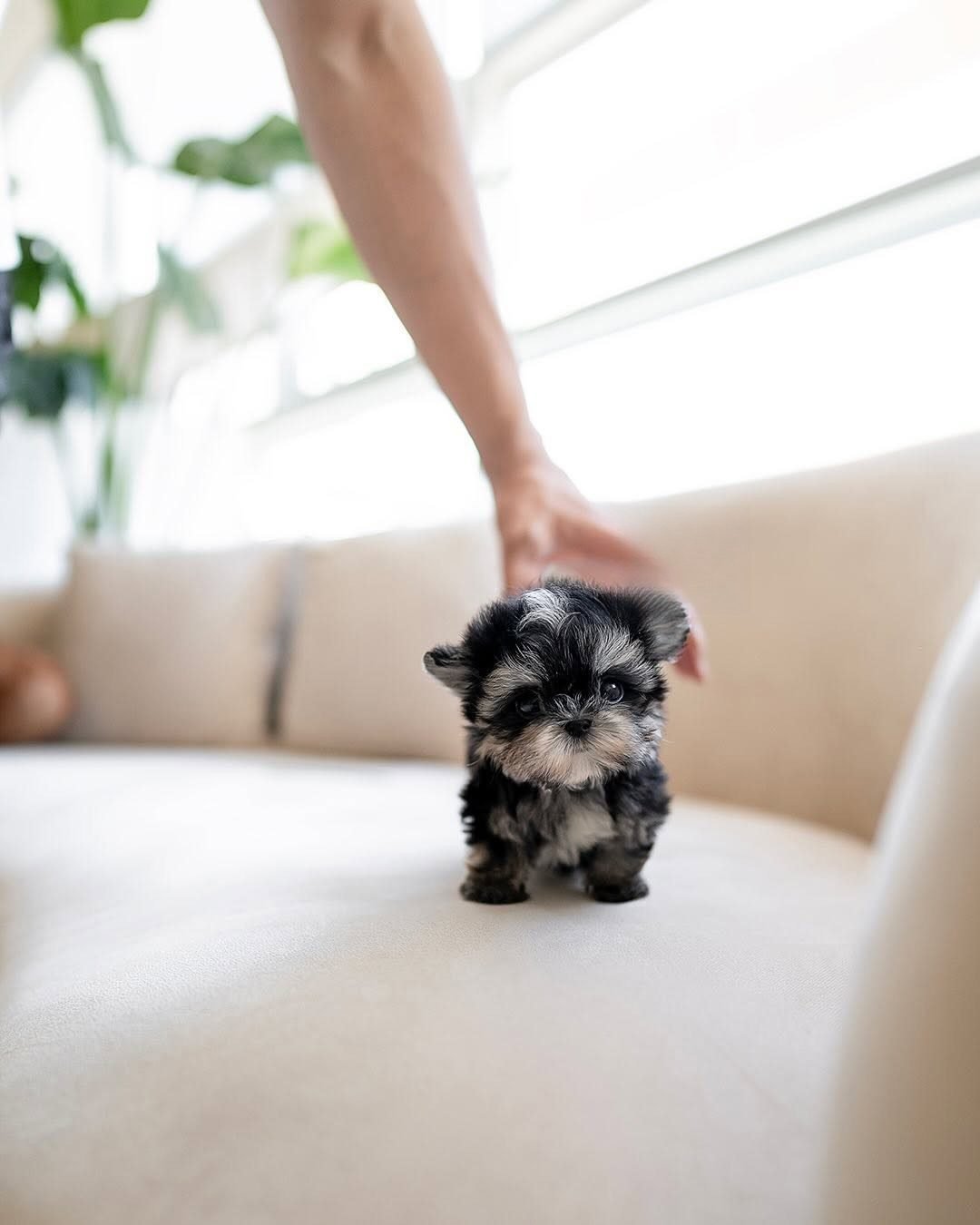 How can I keep my Teacup Morkie puppy safe at home? Puppy-proof your home by securing small objects they could swallow and providing a soft, safe play area.