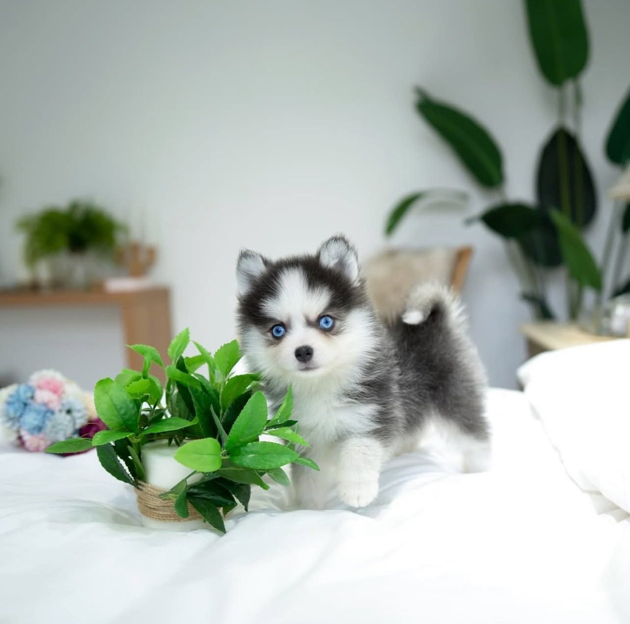 What are the benefits of owning a Teacup Pomsky? They offer a charming combination of a striking appearance, manageable size, and a friendly personality, making them an ideal companion for various lifestyles.